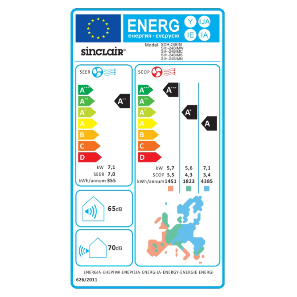 Sinclair wandmodel Marvin 7,1 kW | Single-split airco set | SIH-24BIMW | Wit | WiFi
