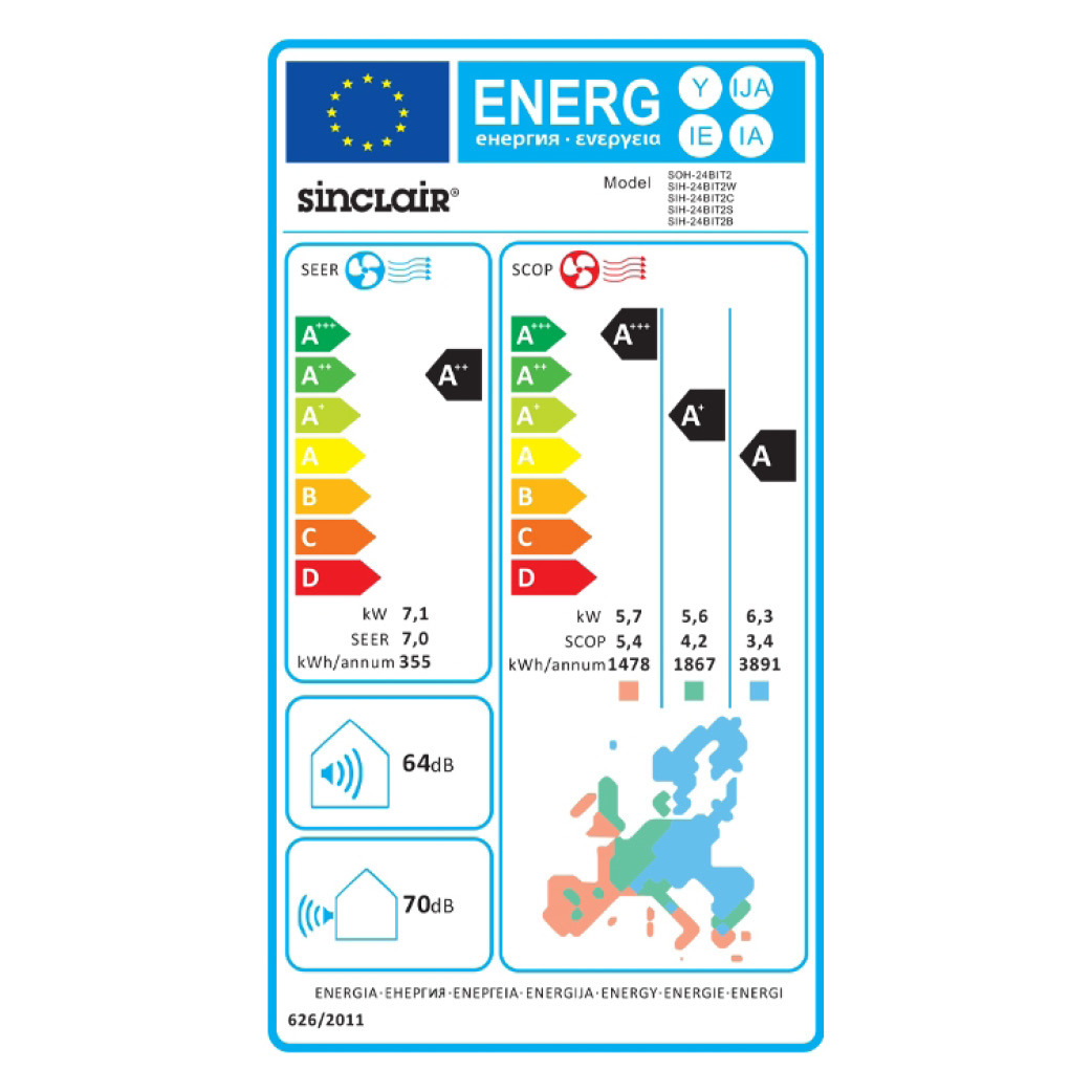 • SEER 7,0 (A++) / SCOP 4,2 (A+) – energiezuinig koelen en verwarmen